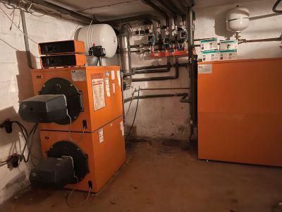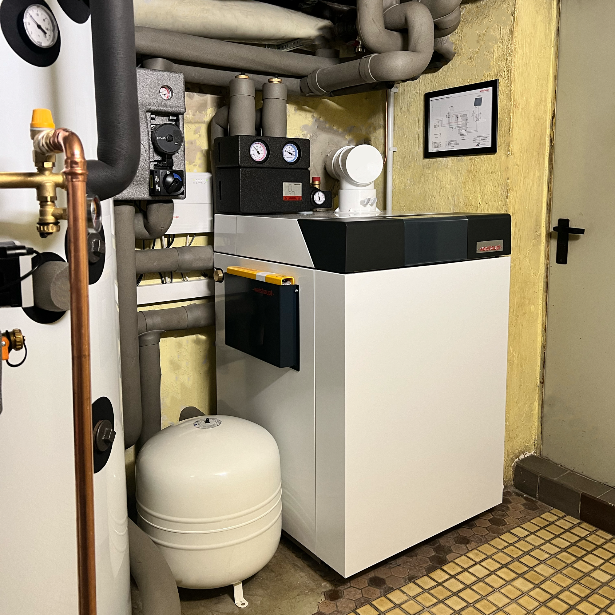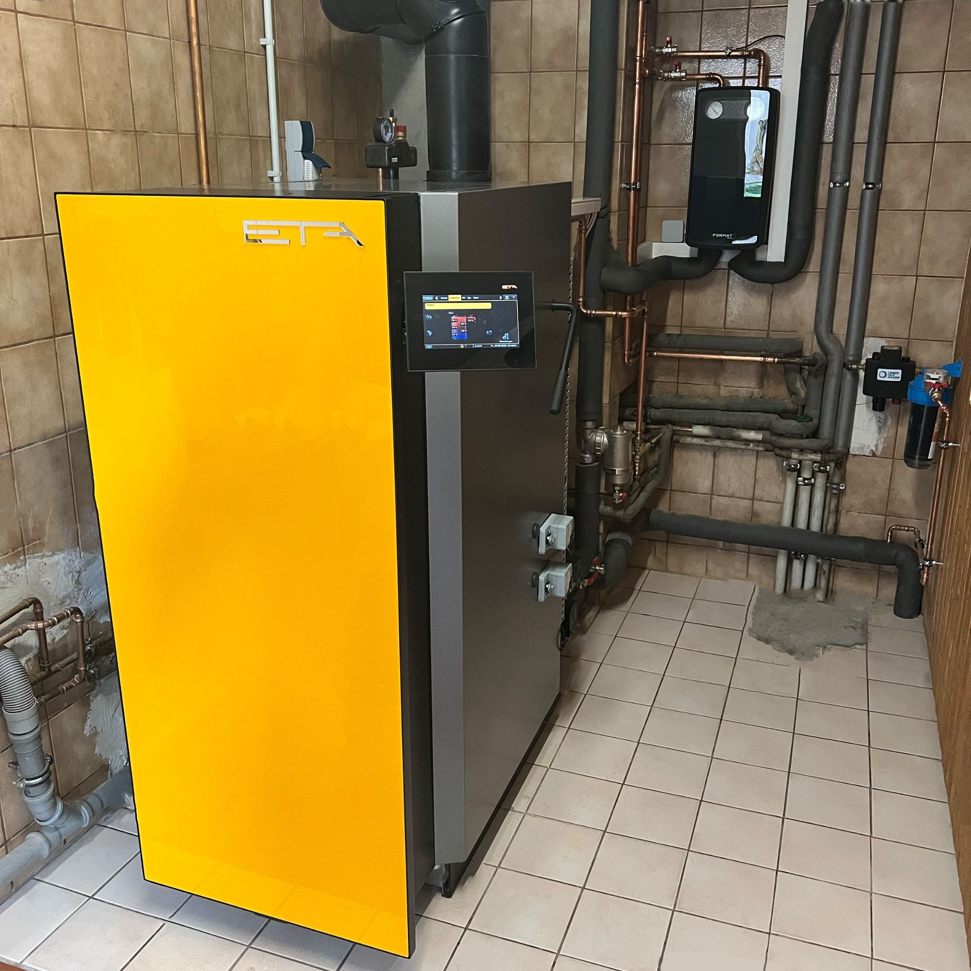 Anlage bestehend aus einem 32kW Hackschnitzelkessel sowie einem 30kW Scheitholzkessel mit 3000l Pufferspeicher